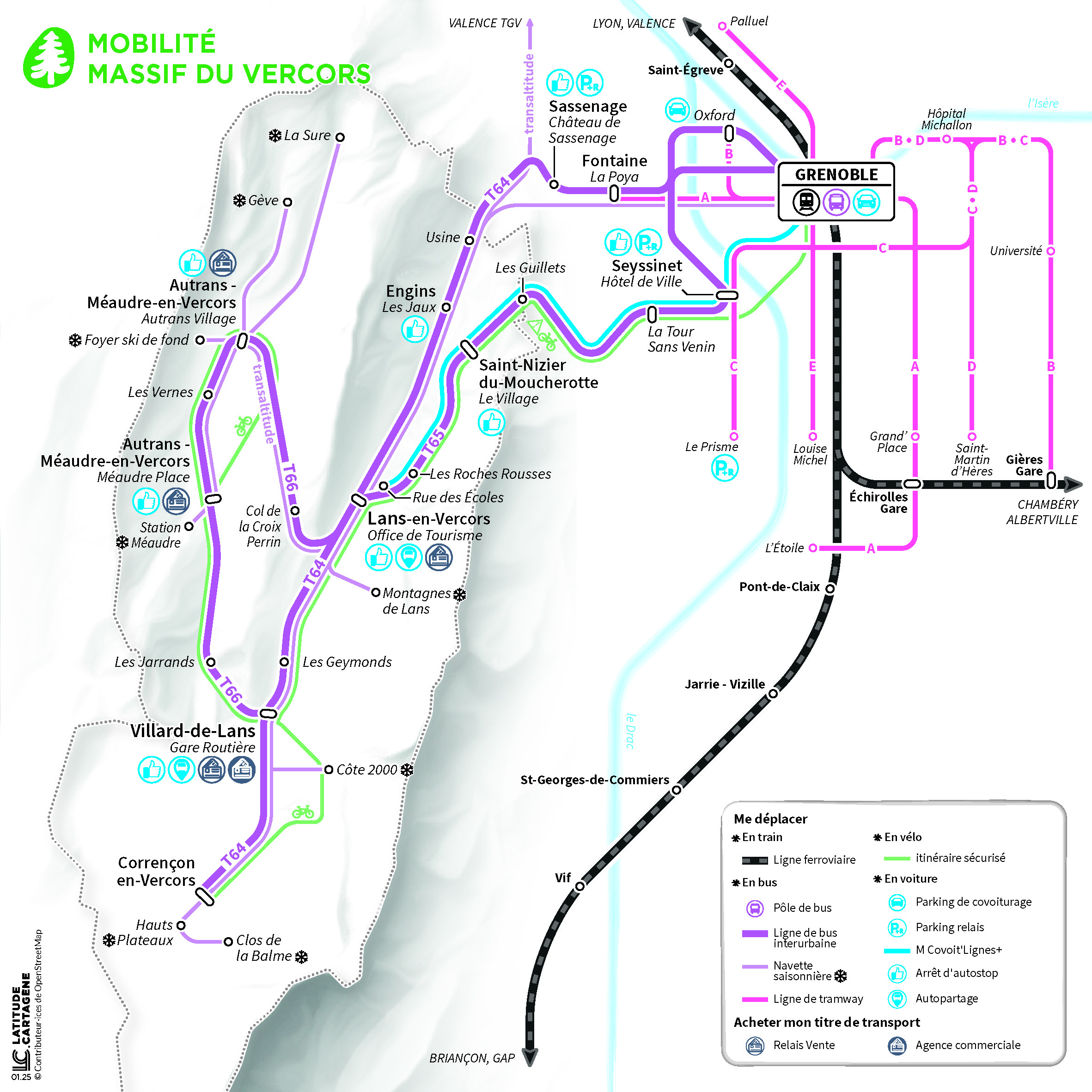 Le bus ou Car Région : T64 ou T65 de Grenoble à Lans-en-Vercors puis T66 Horaires et tickets.