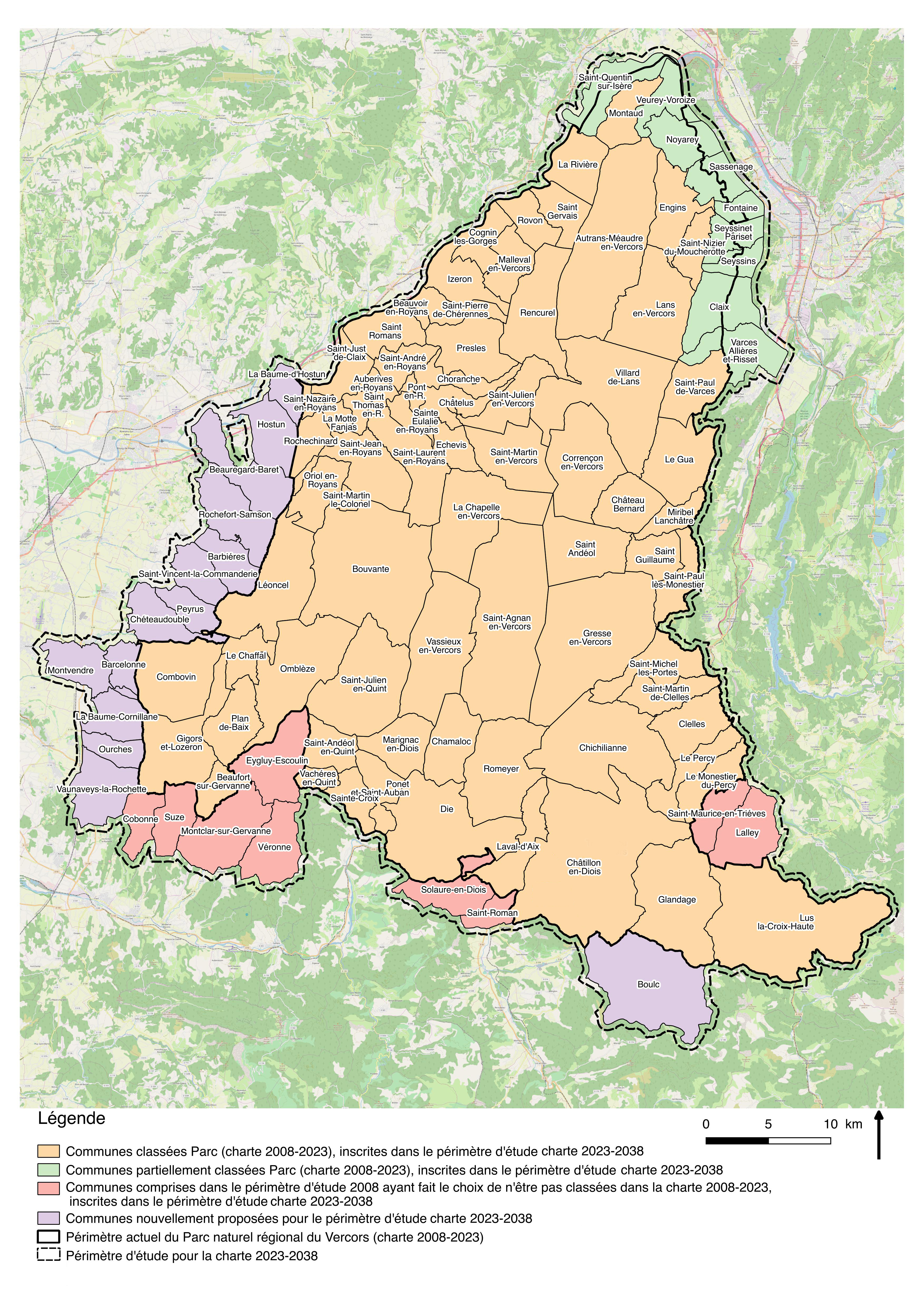 Entre 2018 et 2024, un travail a été engagé pour diagnostiquer les réalisations de la charte 2008-2023, pour rédiger le nouveau projet de territoire, le partager, l'amender et le voter. Les communes se sont prononcées sur leur adhésion à cette charte et donc au Parc du Vercors lors du 1er semestre 2024.