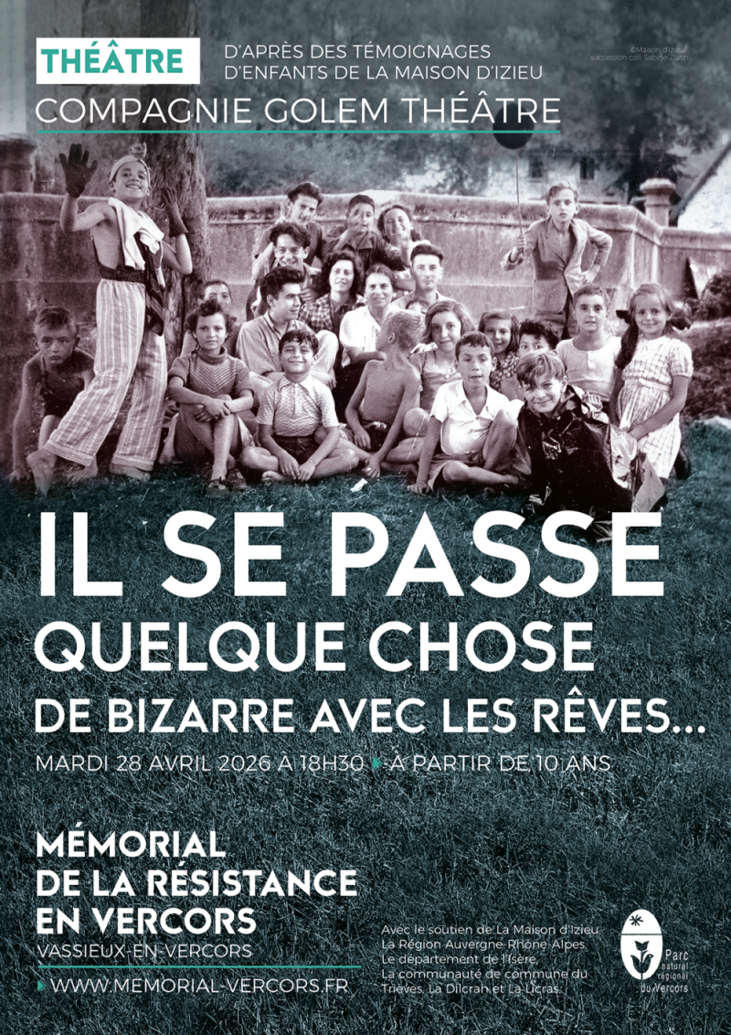Le Mémorial de la Résistance en Vercors accueille la compagnie Golem Théâtre pour une prestation théâtrale fondée sur des témoignages d’enfants ayant vécu à la Maison d’Izieu pendant la Seconde Guerre mondiale.